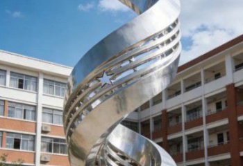 雕塑以不锈钢锻造的流畅环形为主体,环身缀满振翅欲飞的白鸽,基座镌刻 “飞翔” 二字。镜面不锈钢材质折射天光与建筑,灵动的白鸽与刚劲的环形形成对比,既彰显校园活力,也传递自由、和平与向上的精神内核,是兼具视觉美感与育人意义的公共艺术作品。